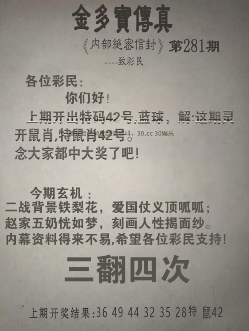 280期:绝杀二合【06合.11合】开:鼠42